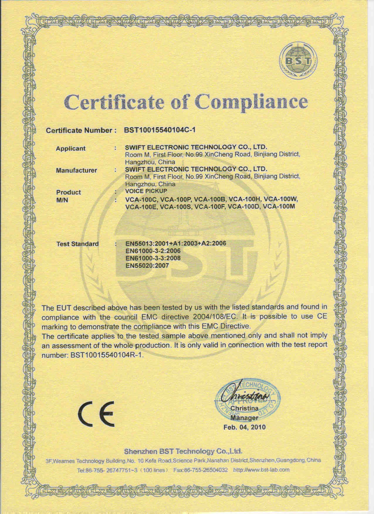 | VCA系列产品CE认证 |