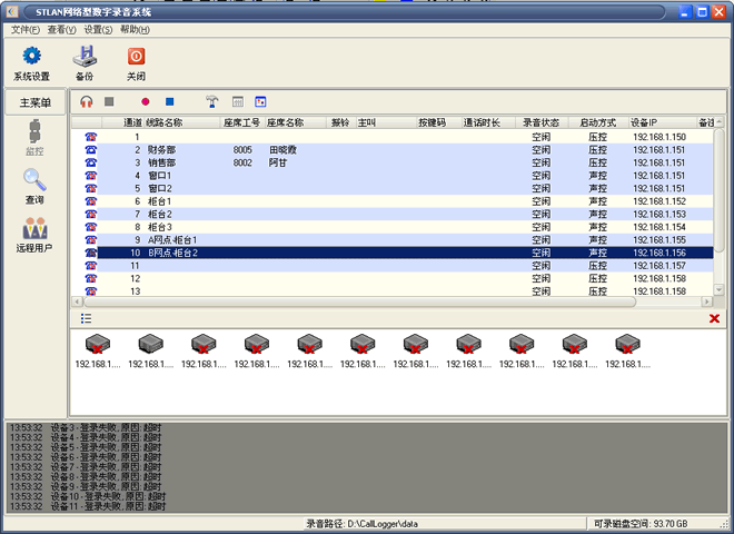 e. 网络检测网络通断情况,网络恢复设备可自动连接录音服务器。